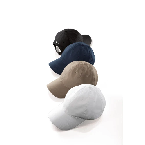 The perfect classic look with a contrast underbill as engineered by Nike. This cap has an unstructured, mid-profile design and a self-fabric closure with buckle. The contrast Swoosh design trademark is embroidered on the center back. Made of 58/42 cotton/poly twill. Embroidered logo included up to 7000 stitches.